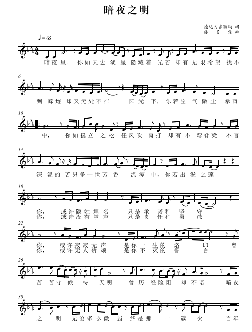 慶祝建黨百年獲獎歌曲作品選集——《暗夜之明-獻(xiàn)給保密人的歌》詞曲。