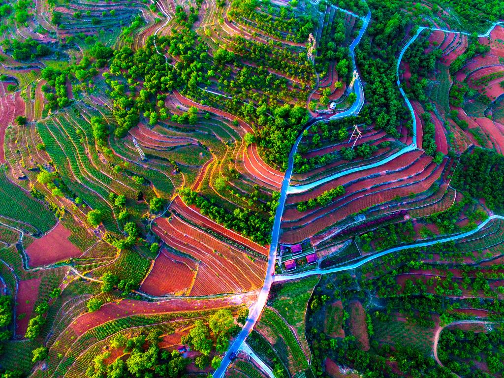 2017年5月,東蓮花院鎮(zhèn)花鄉(xiāng)果巷項(xiàng)目區(qū)域俯瞰(無(wú)人機(jī)照片)。王愛(ài)軍攝