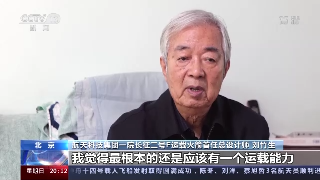 航天科技集團一院長征二號F運載火箭首任總設(shè)計師 劉竹生:我覺得最根本的還是應(yīng)該有一個運載能力,你要是運載能力不夠,連個飛船都運不上去,還載什么人?所以這個是最基本的。再加上第一個是高可靠,第二個是高安全。