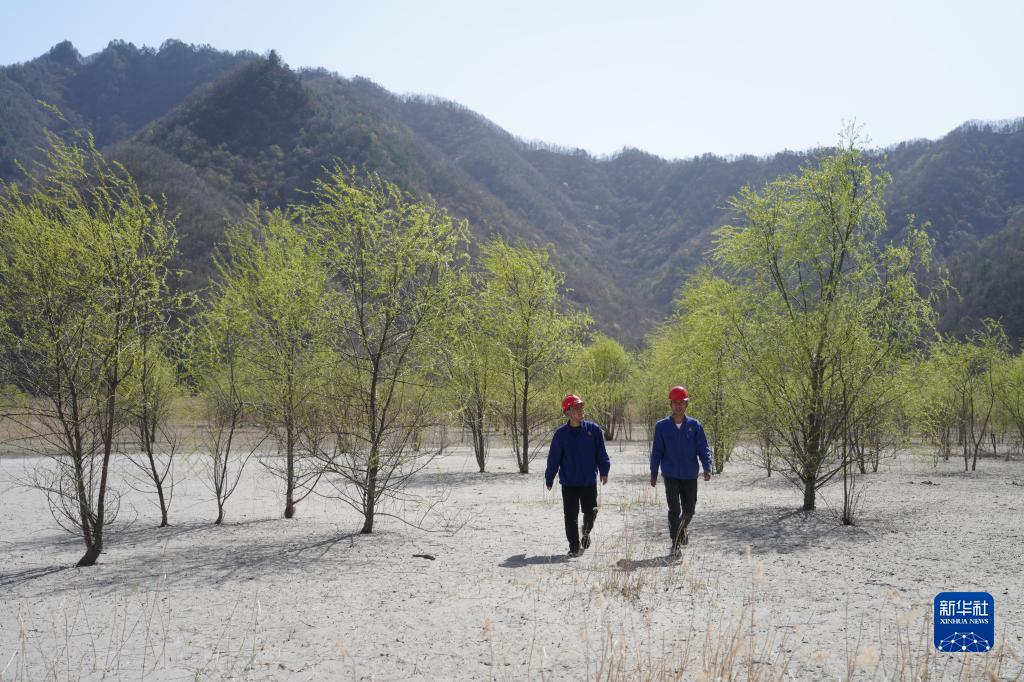 4月7日,金堆城鉬業(yè)集團(tuán)有限公司工作人員在經(jīng)過生態(tài)治理后的木子溝尾礦庫(kù)內(nèi)巡查。 新華社記者 邵瑞 攝