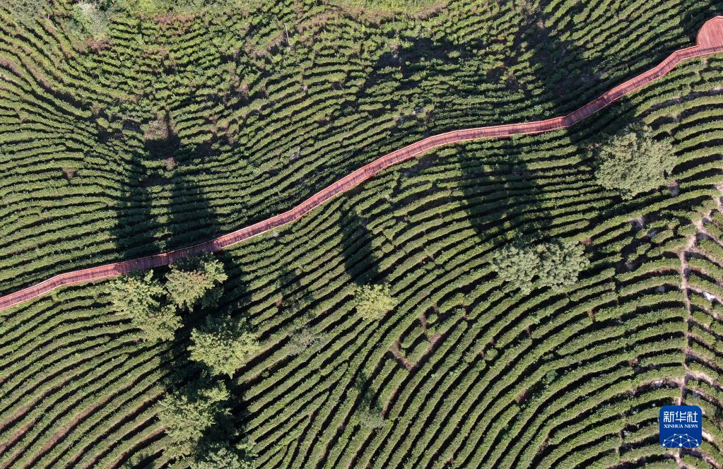 這是6月14日拍攝的陜西省平利縣老縣鎮(zhèn)蔣家坪茶園(無人機(jī)照片)。 新華社記者 李一博 攝