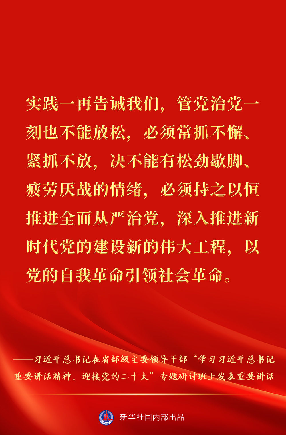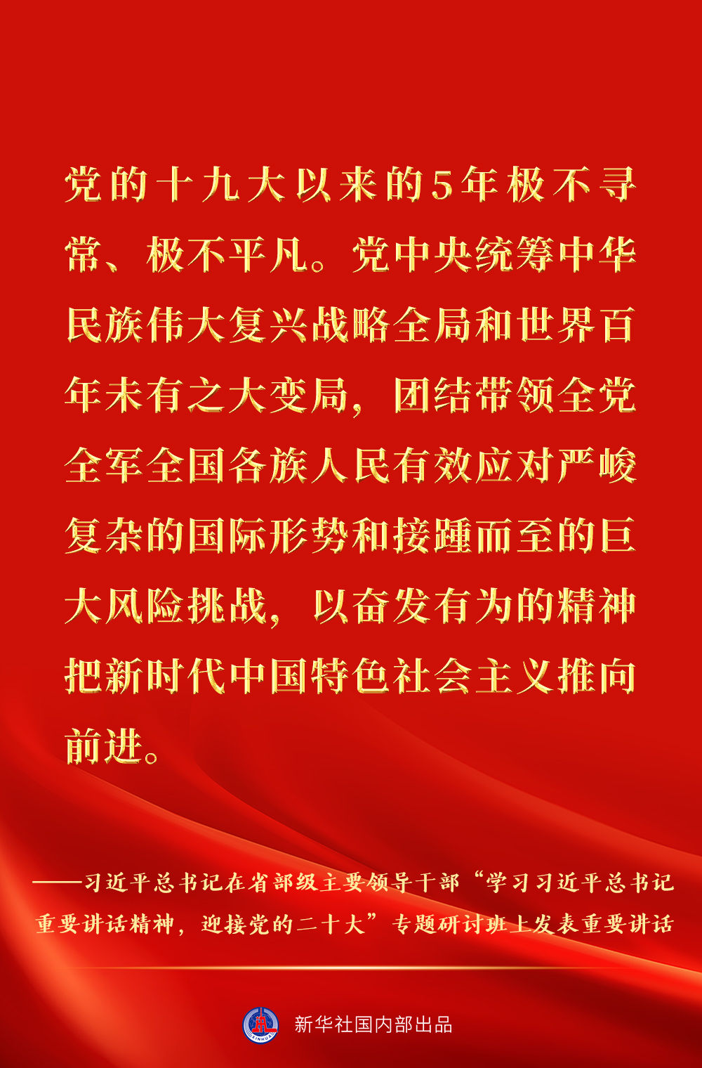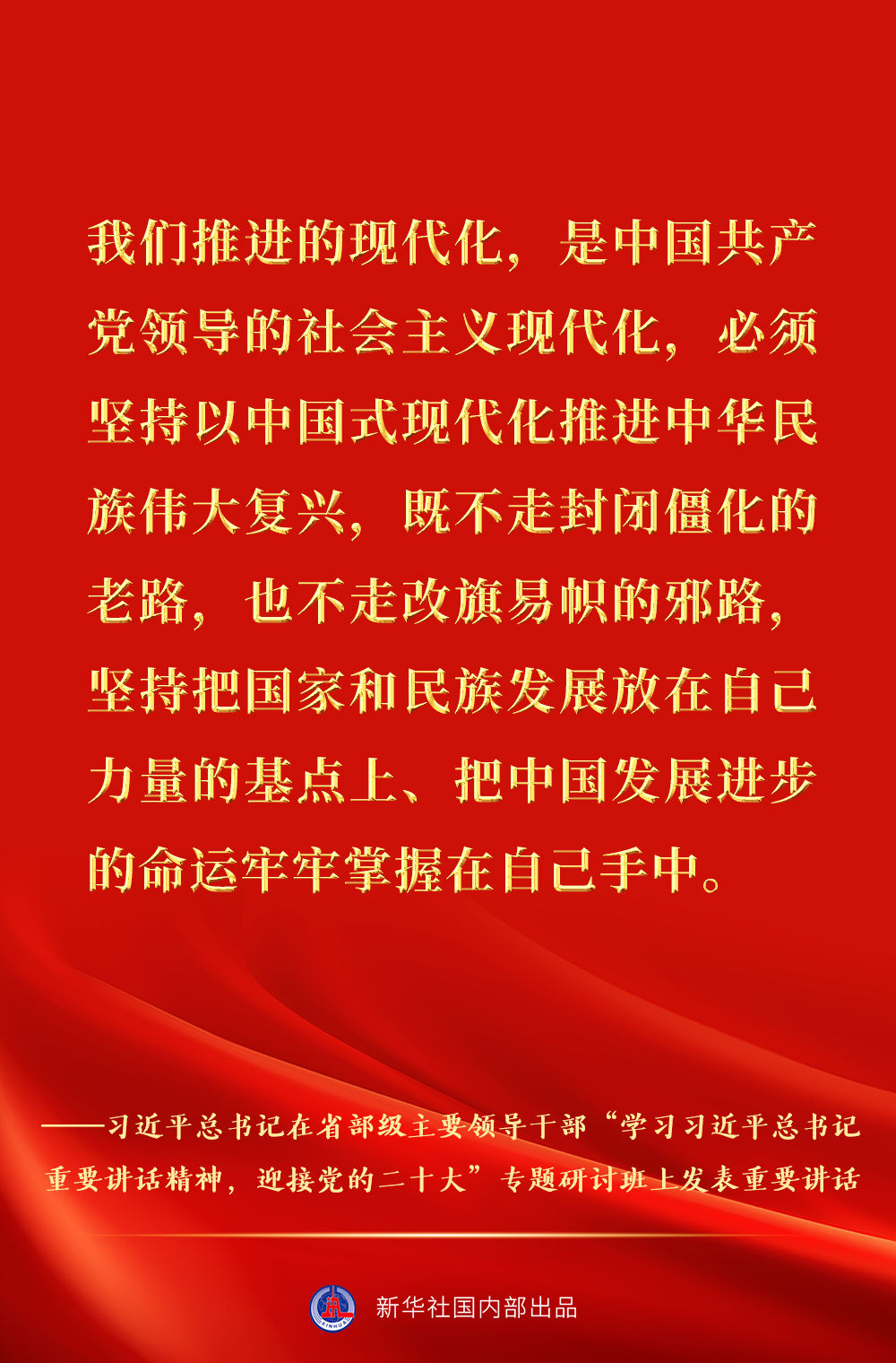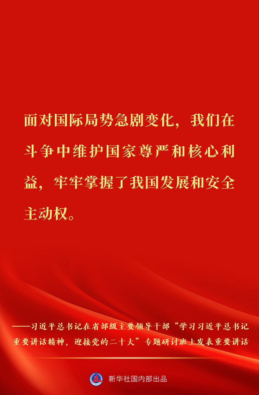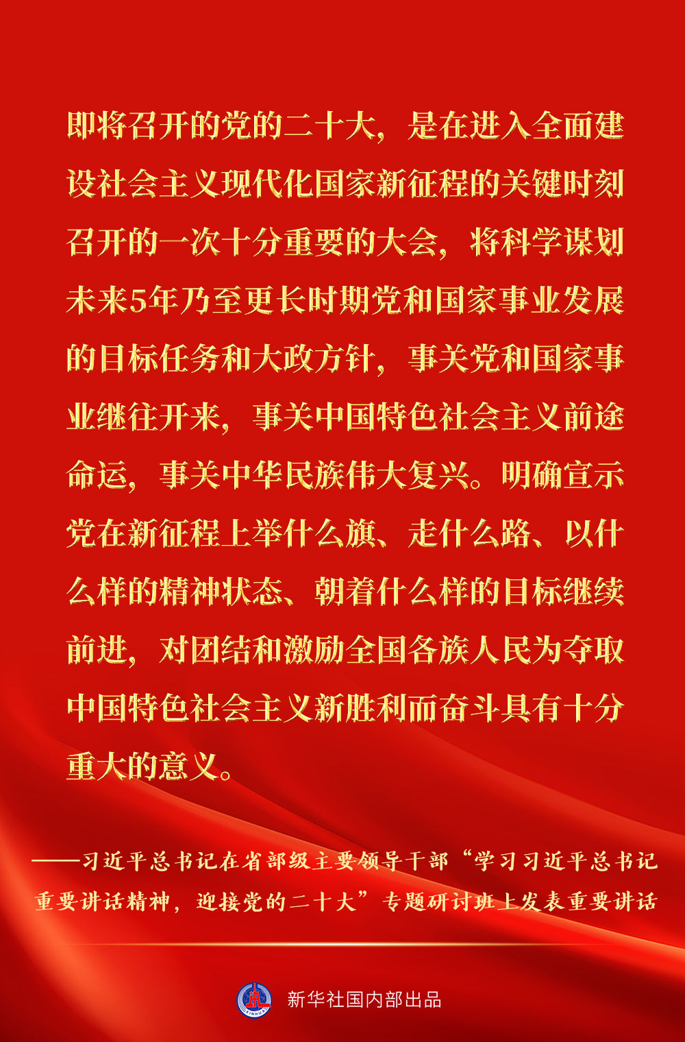 省部級(jí)主要領(lǐng)導(dǎo)干部“學(xué)習(xí)習(xí)近平總書記重要講話精神,迎接黨的二十大”專題研討班26日至27日在京舉行。中共中央總書記、國(guó)家主席、中央軍委主席習(xí)近平發(fā)表重要講話。一起來看金句速覽。
