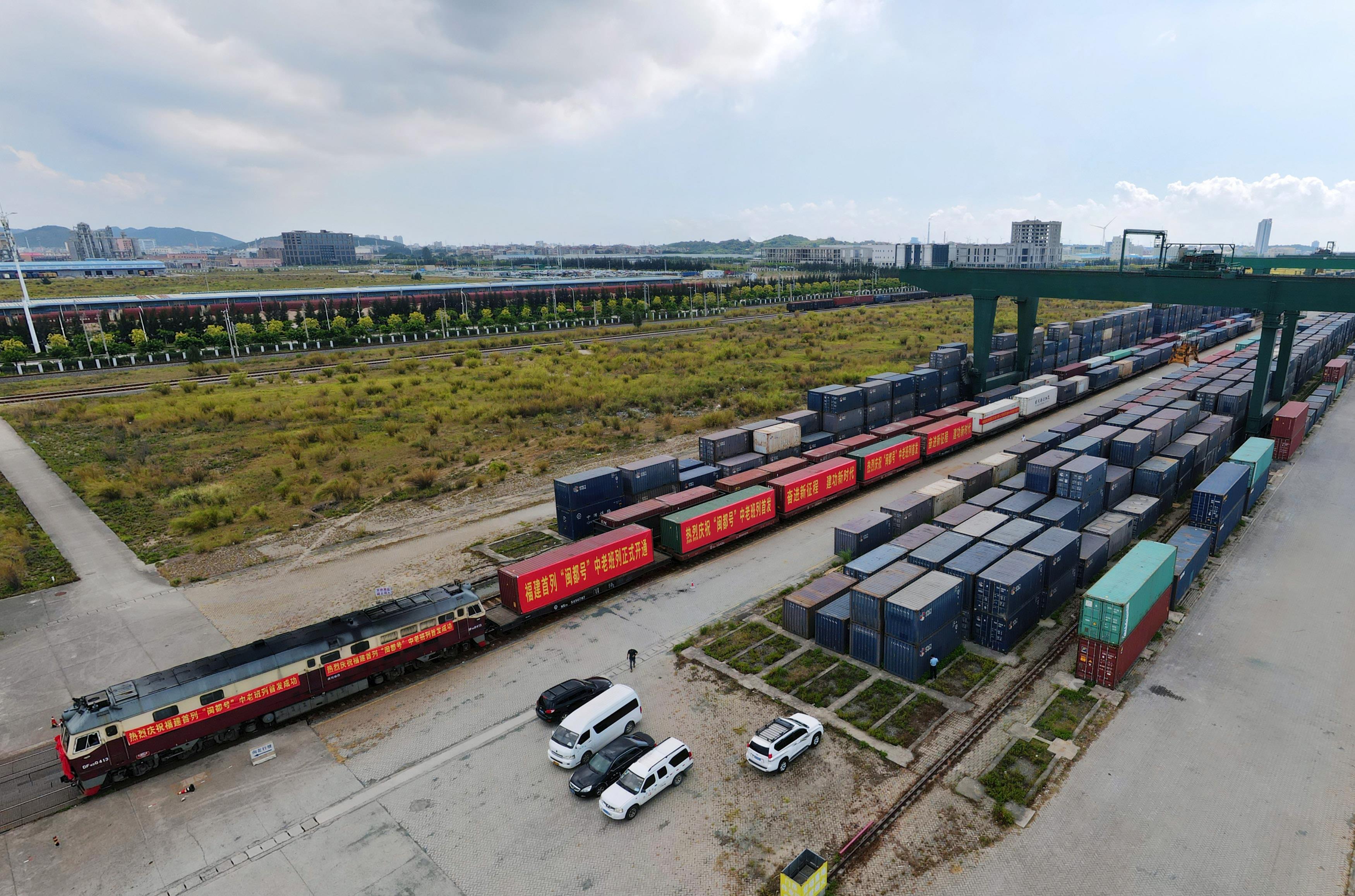 △2022年8月31日,福建首趟中老鐵路國際貨運列車從福州江陰港站開出。