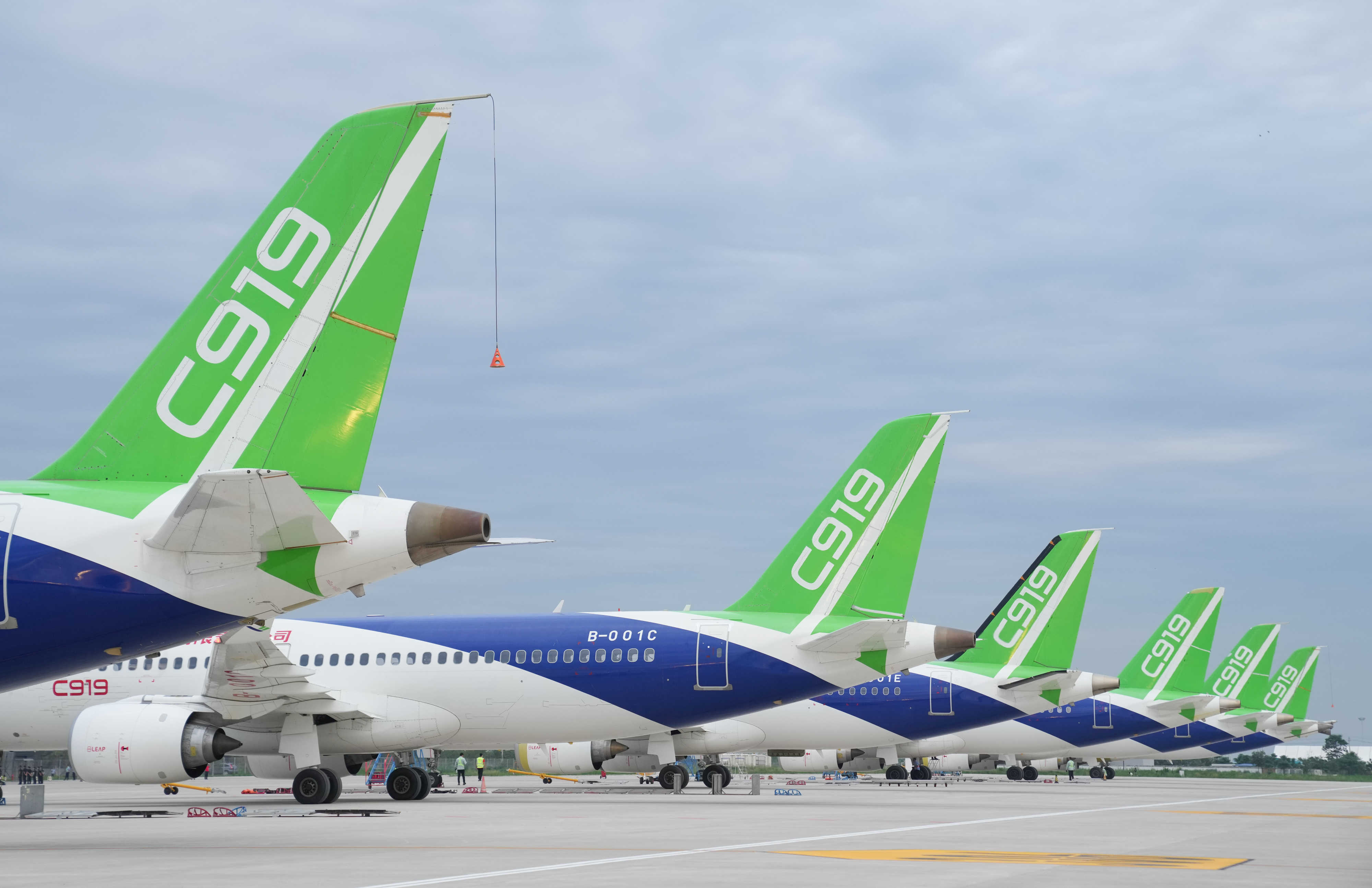 在陜西省蒲城縣拍攝的C919大型客機的試飛機(2022年7月18日攝)。新華社記者 丁汀 攝