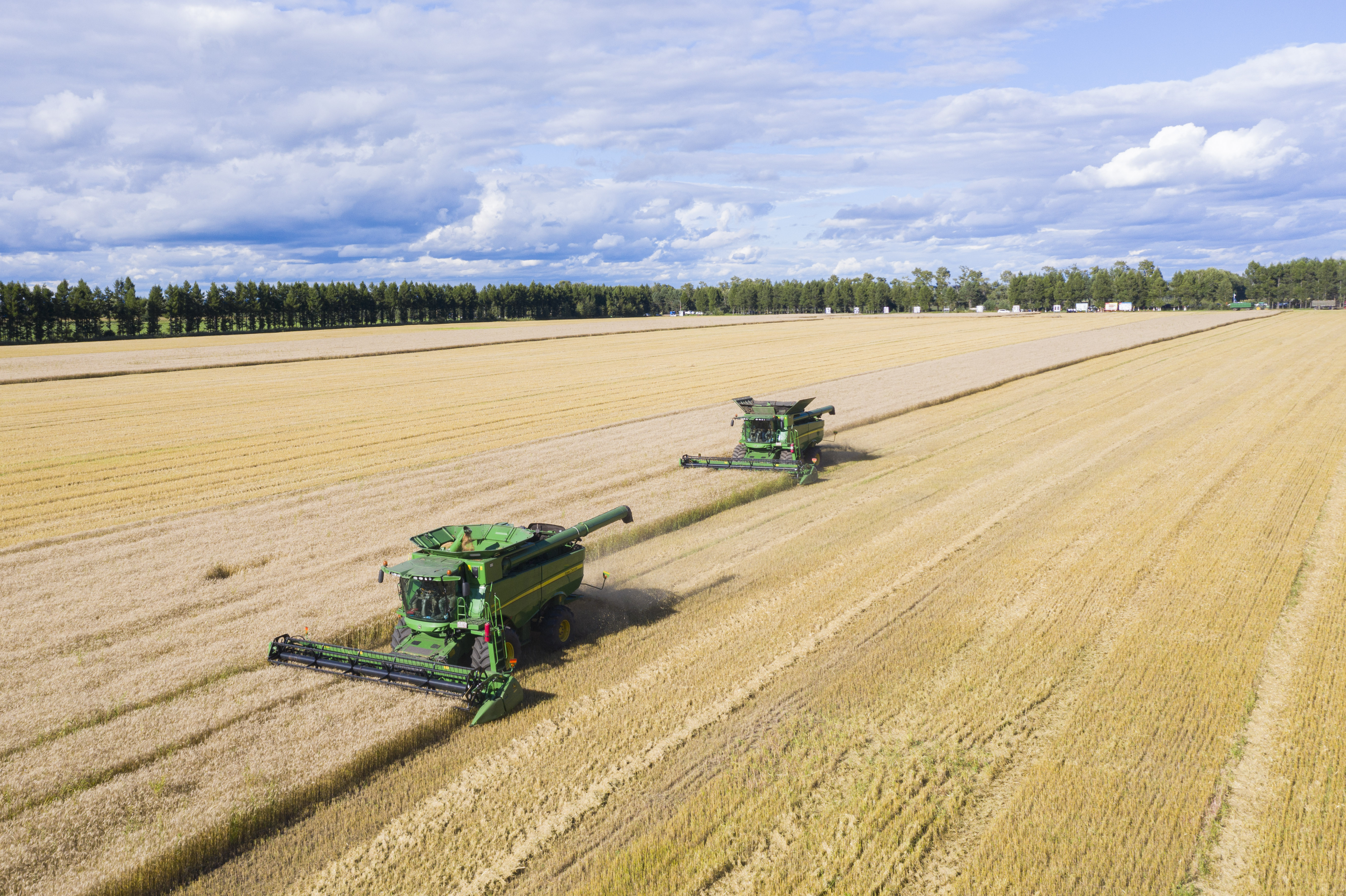 黑龍江北大荒,一臺臺收割機車往來穿梭,豐收的畫卷在這片黑土地鋪展開來。