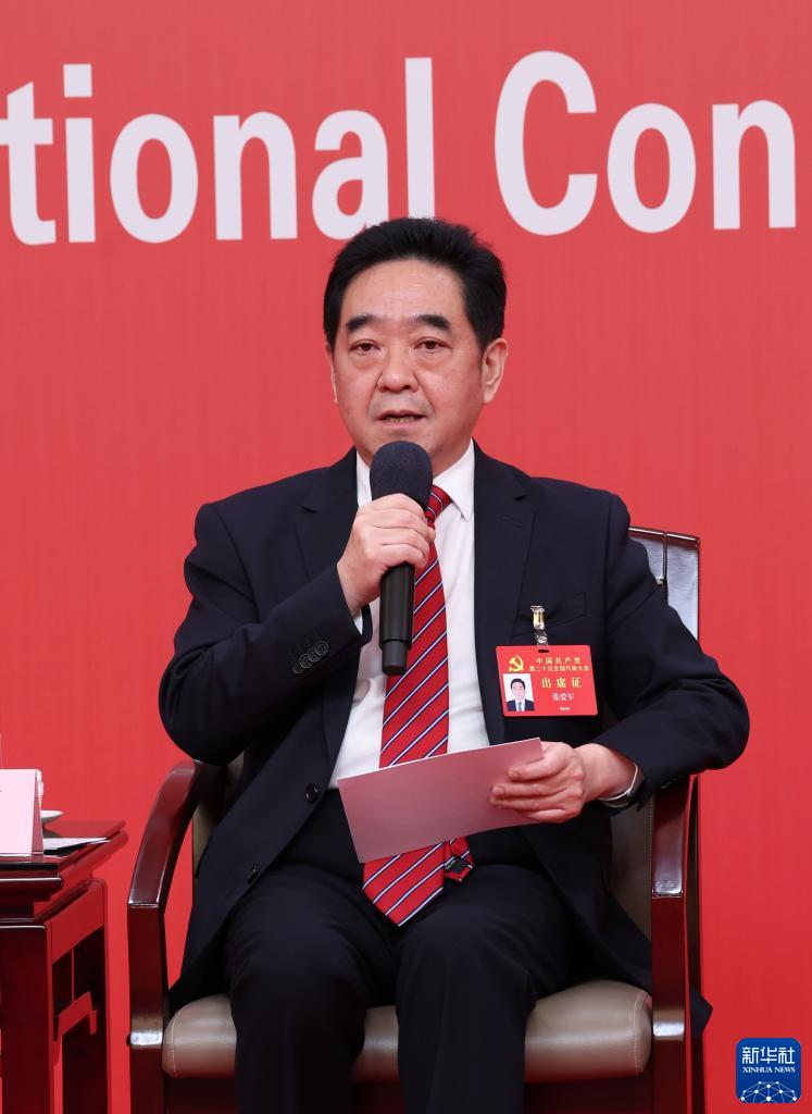 10月18日,中國共產(chǎn)黨第二十次全國代表大會新聞中心舉行集體采訪。黑龍江、上海、江蘇、浙江、安徽、福建、江西代表團(tuán)新聞發(fā)言人出席,介紹代表團(tuán)學(xué)習(xí)討論二十大報告情況,并回答記者提問。這是福建省委常委、宣傳部部長張彥在回答記者提問。新華社記者 張玉薇 攝