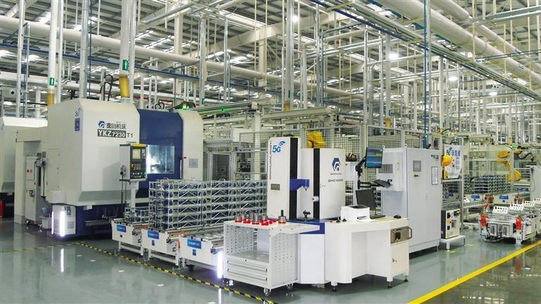 10月10日,在法士特高智新公司智能化生產(chǎn)線上數(shù)控機床正在工作中。 記者 沈謙攝
