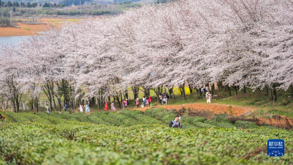 3月21日,游客在貴州省貴安新區(qū)櫻花園賞花觀光。新華社記者 楊文斌 攝