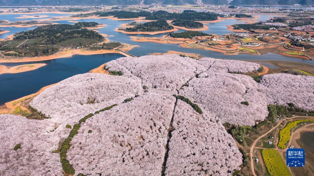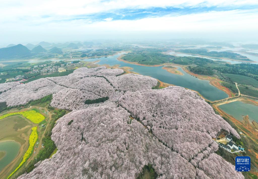 3月21日拍攝的貴州省貴安新區(qū)櫻花園(無人機(jī)照片)。新華社記者 陶亮 攝