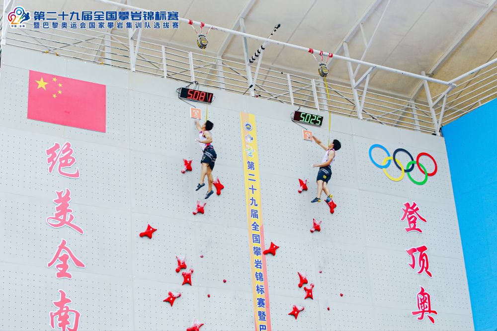19日,本屆錦標(biāo)賽男子、女子速度賽開(kāi)賽。男子項(xiàng)目走向頗具戲劇性。預(yù)賽中,上賽季國(guó)際攀聯(lián)世界杯維拉爾站冠軍龍見(jiàn)國(guó)在預(yù)賽中就爬出5秒04,將其國(guó)家隊(duì)隊(duì)友龍金寶保持的該項(xiàng)目全國(guó)紀(jì)錄提高了百分之一秒。決賽的八進(jìn)四輪,龍見(jiàn)國(guó)再次爬出5秒04。但半決賽與龍金寶相遇時(shí),他卻因失誤被淘汰,無(wú)奈進(jìn)入三、四名決賽。