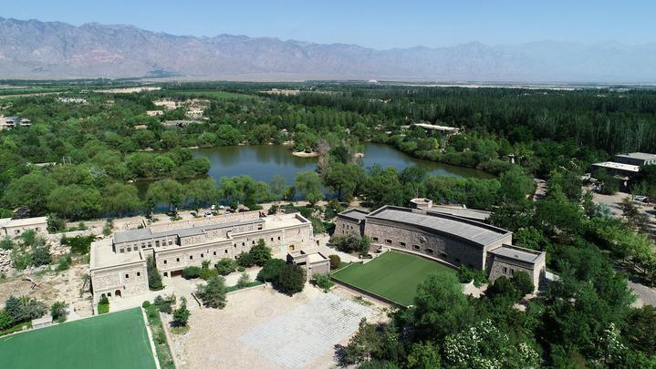 位于賀蘭山東麓的志輝源石酒莊(6月8日攝,無人機照片)。新華社記者 王鵬 攝