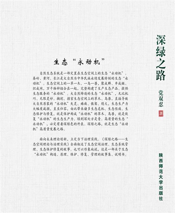 面向未來理論創(chuàng)新,立定當(dāng)下治理實(shí)踐?!渡罹G之路——生態(tài)空間理論與治理實(shí)踐》全面敘述了生態(tài)空間治理、生態(tài)系統(tǒng)管理、生態(tài)保護(hù)修復(fù)的故事。也可以形象地說,這是一部關(guān)于生態(tài)“永動機(jī)”構(gòu)造、原理、保護(hù)、修復(fù)、管理的故事集、說明書。