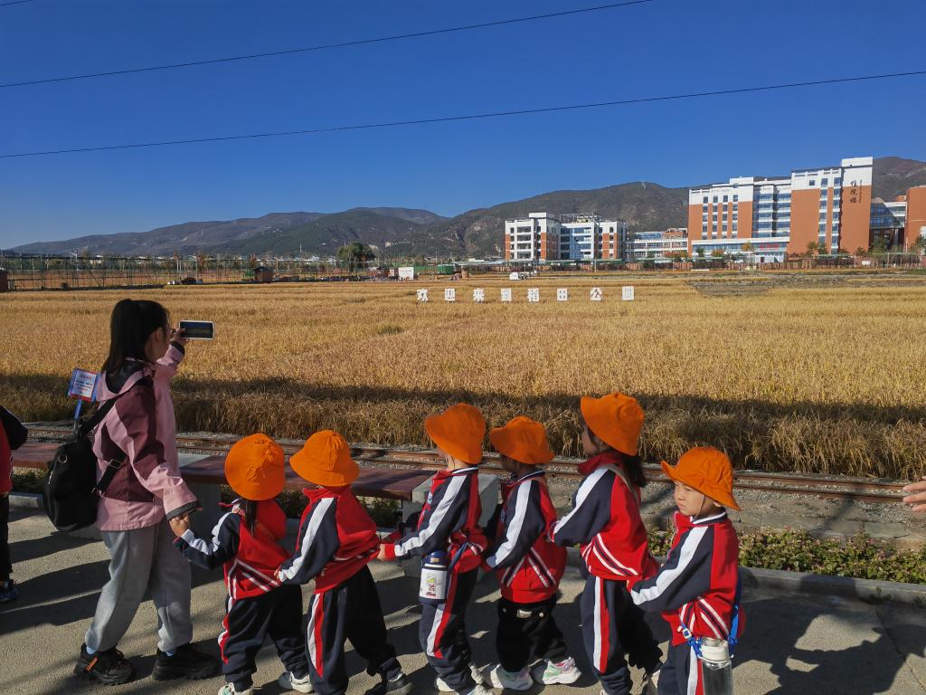10月20日,幼兒園師生來(lái)稻田公園參觀游玩。新華社記者 魏飚 攝
