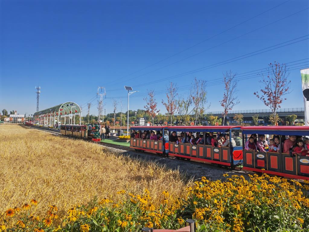 這是10月20日拍攝的稻田公園里的小火車(chē)。新華社記者 魏飚 攝