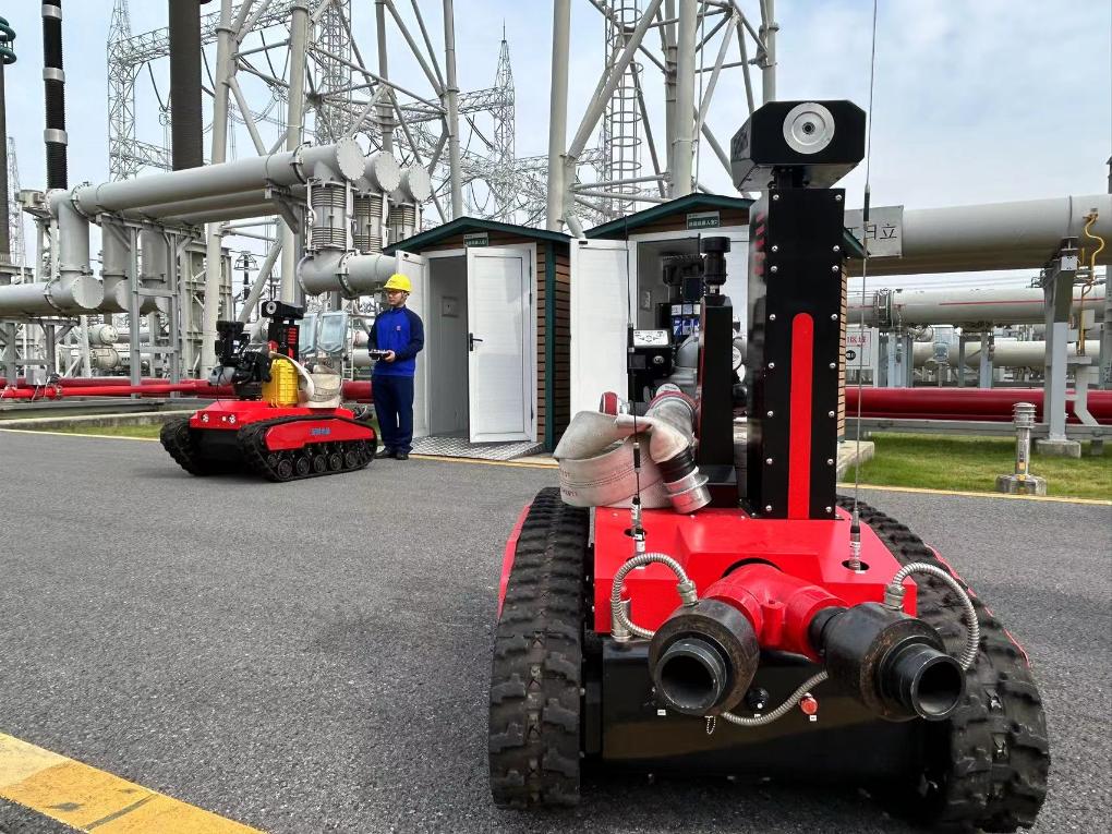 古泉換流站內(nèi),消防員正在調(diào)試消防滅火偵察機(jī)器人。新華社記者吳慧珺 攝