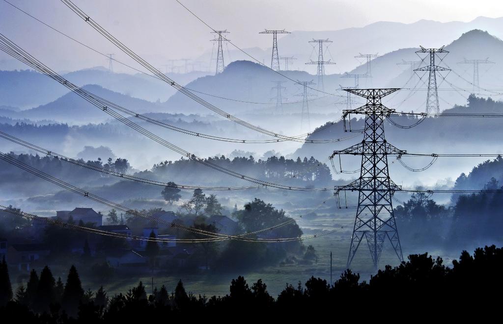 安徽省池州市青陽縣境內(nèi)的特高壓輸電線路。(資料圖片)