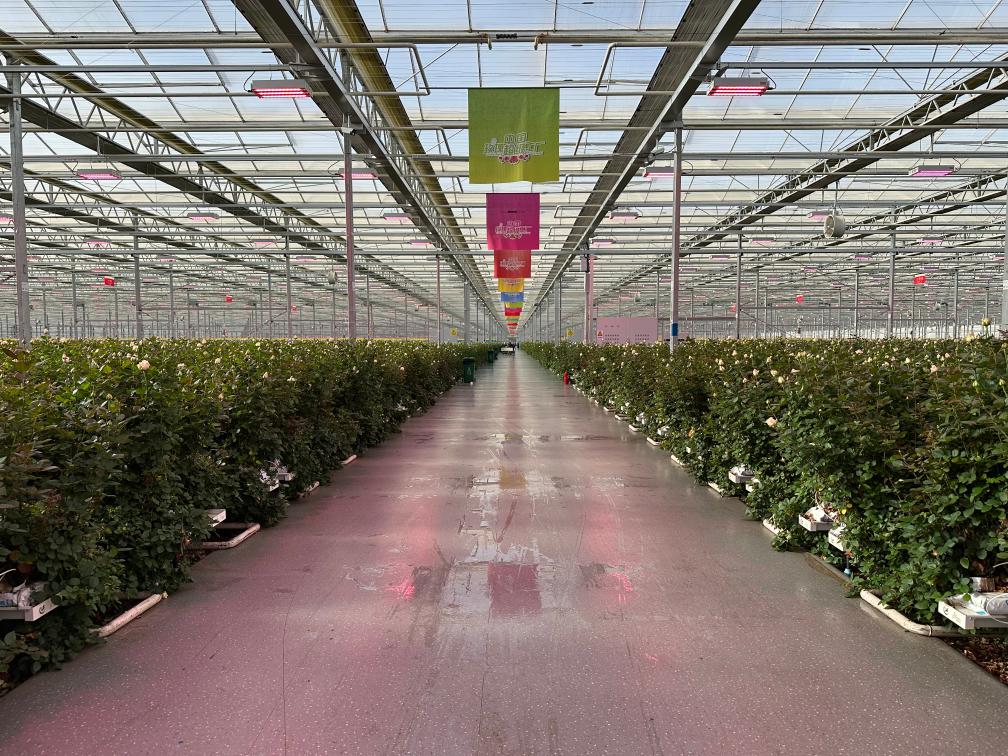 為了讓“西北產(chǎn)”玫瑰更有市場競爭力,鮮花港項目中還蘊含很多科技元素。在玫瑰工廠里,記者看到,一株株玫瑰的上方,懸掛著一盞盞泛著粉紅色的LED燈。這項來自荷蘭的補光技術(shù)能根據(jù)玫瑰的不同生長階段,調(diào)整光源,形成一個最優(yōu)“光配方”,以提高玫瑰生長速度、品質(zhì)和產(chǎn)量。溫度適宜又不干燥的室溫也提醒著記者,這里肯定有什么訣竅。