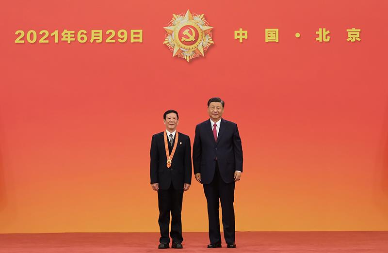 △2021年6月29日,習(xí)近平總書(shū)記向“七一勛章”獲得者艾愛(ài)國(guó)頒授勛章。